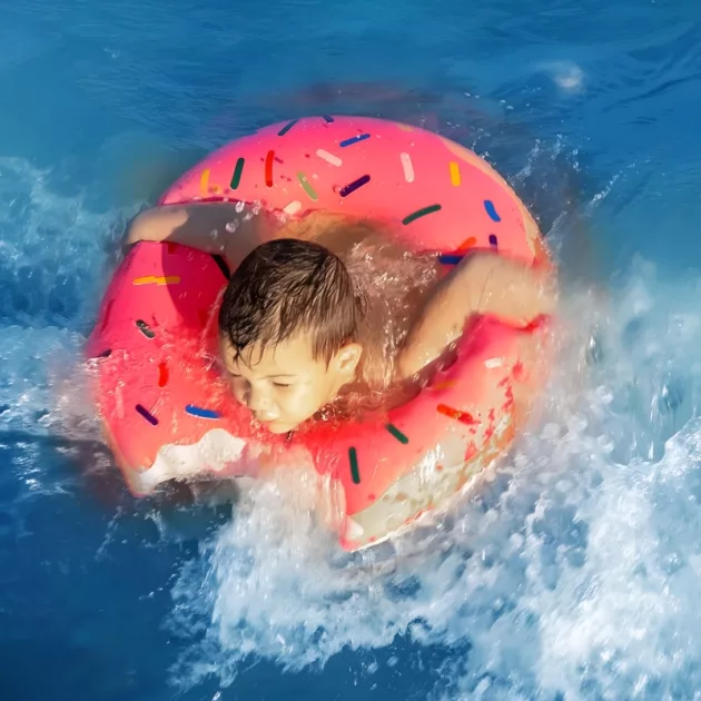 We hebben veel drijvers geprobeerd, maar deze donut is veruit de zachtste en makkelijkste om op te blazen. Mijn kinderen zijn gek op de spetterende kleuren!