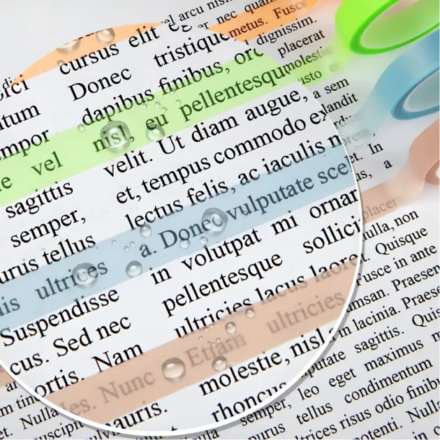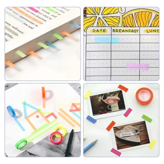 Ik gebruik deze tape voor mijn natuurkundeles. Ik vind het leuk om gekleurde strepen in mijn boek te zien en mijn leraar zei dat mijn notities nu heel duidelijk zijn.