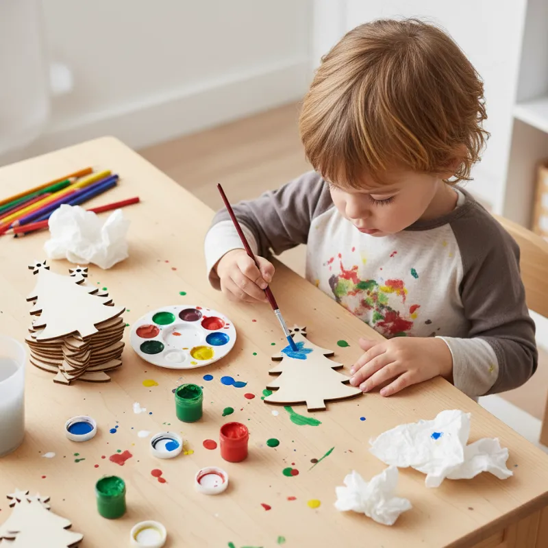Mijn kinderen vinden het elk jaar geweldig om deze houten vormen te schilderen. Het zien ophangen van hun kunstwerkjes in de boom zorgt altijd voor grote glimlachen bij ons thuis.