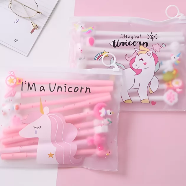 Mijn handschrift ziet er netjes uit met deze pennen. De unicorn-vorm maakt mij vrolijk tijdens het werken en het tasje is handig voor op reis.