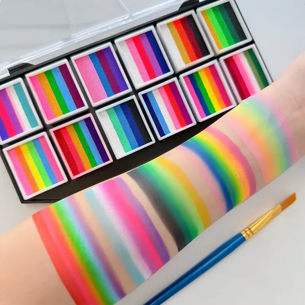 Ik ben dol op hoe fel de kleuren zijn! Heb een hele groep vrienden geschminkt op het feestje van mijn zus en iedereen was enthousiast. Niemand had daarna huidproblemen.