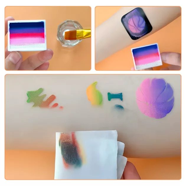 Gebruikt voor een eenhoornfeestje. Iedereen had mooie designs, zelfs volwassenen deden mee! Ging eraf met alleen een doek—geen vlekken.