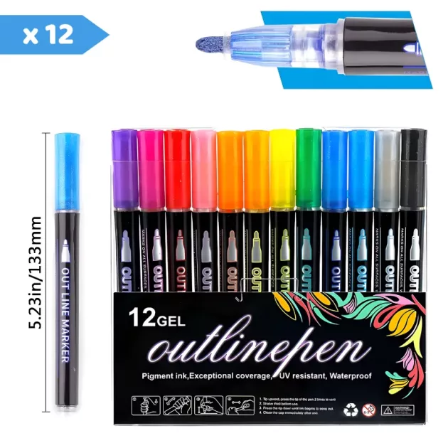 Eenvoudige Dubbele Omlijning - Kinderen creëren opvallende effecten met elke soepele beweging. Het unieke ontwerp voegt direct een metallic tintje toe aan elk creatief werk.
