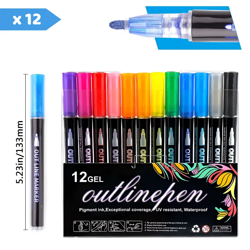 Eenvoudige Dubbele Omlijning - Kinderen creëren opvallende effecten met elke soepele beweging. Het unieke ontwerp voegt direct een metallic tintje toe aan elk creatief werk.