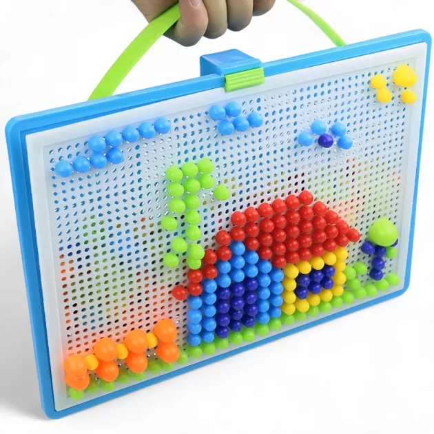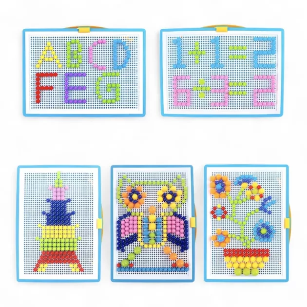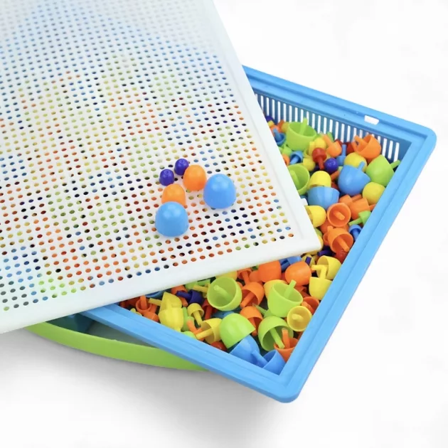 Met 296 kleurrijke stukken verbetert de Kidzly prikbordpuzzel snel de fijne motoriek. Kinderen kunnen patronen volgen of hun eigen levendige mozaïeken maken. Het is een leuke manier om de hand-oogcoördinatie te ontwikkelen en het kleurherkenningsvermogen te vergroten.
