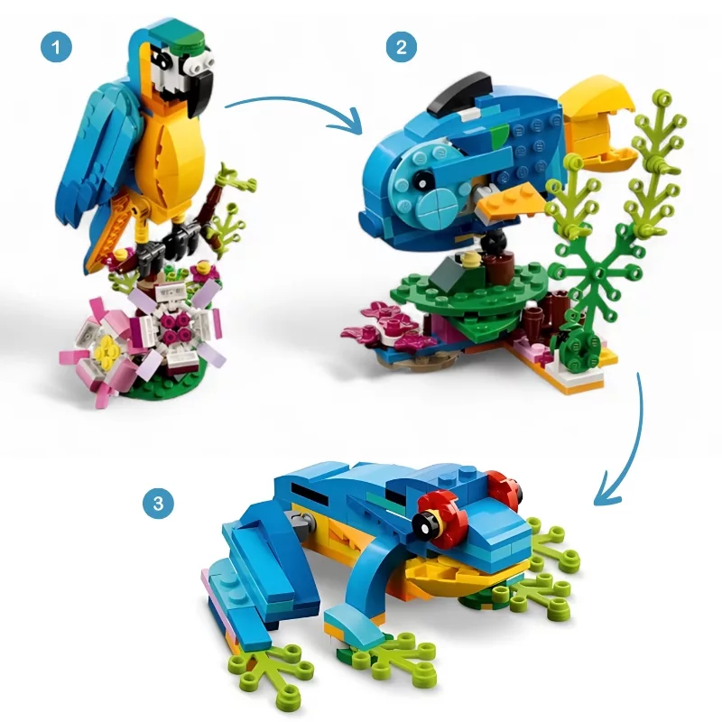 Drie Creatieve Keuzes - Wissel eenvoudig van dier voor eindeloos plezier en afwisselend spel. Kies tussen een papegaai, kikker of vis om het spelen steeds fris te houden.