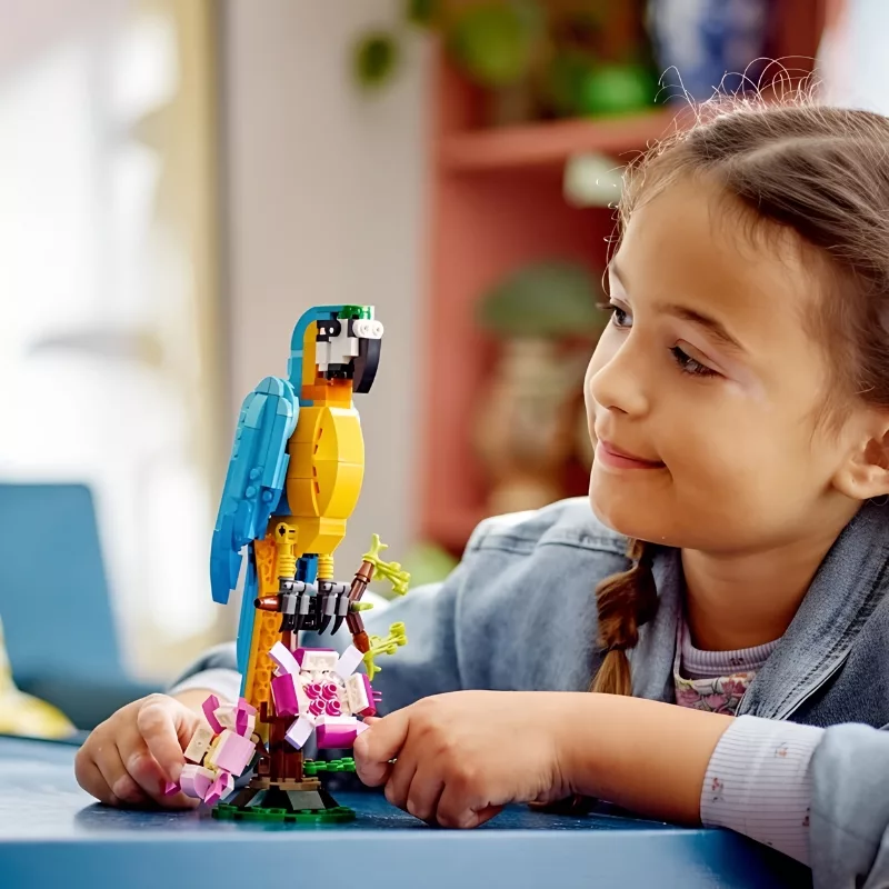 Deze blokjes waren makkelijk vast te pakken en zaten nooit te strak. Ik vond het leuk om de papegaai met zijn vleugels te laten klappen en hem te laten zien.