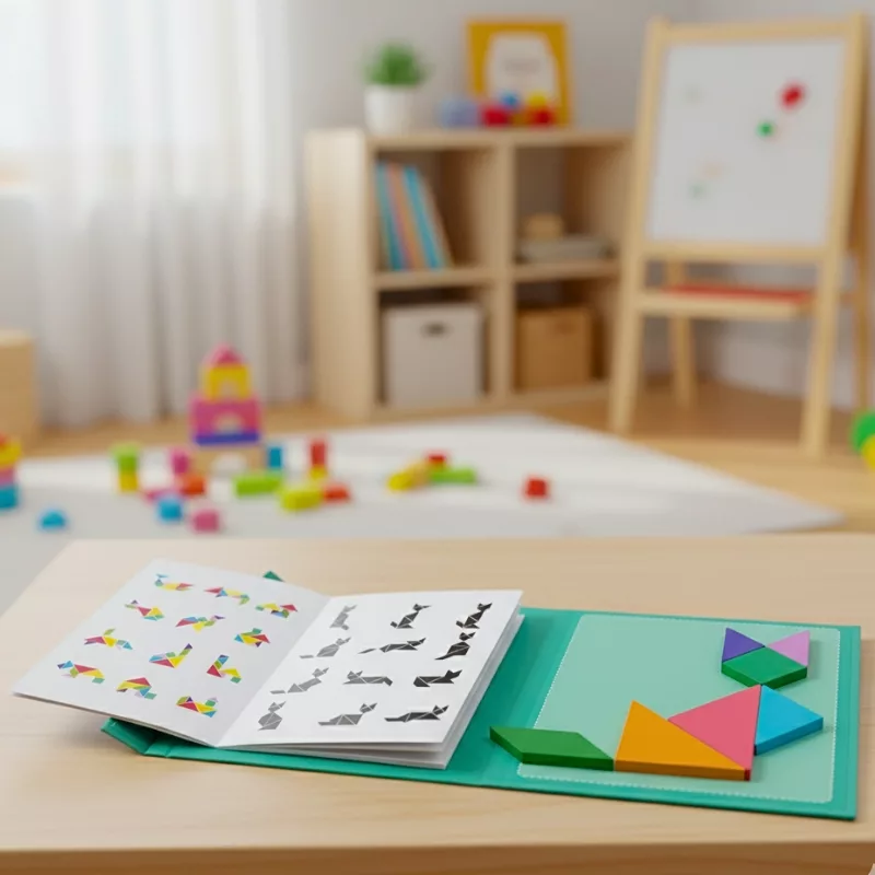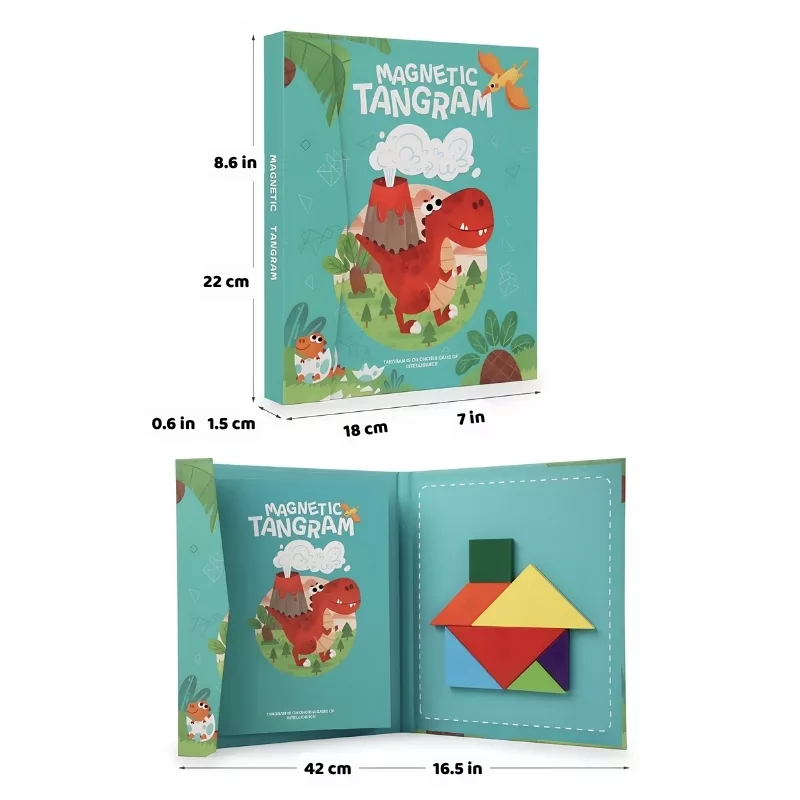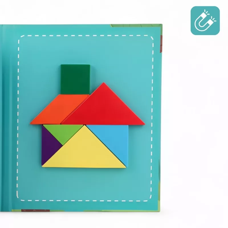 We speelden elke avond na het eten met deze tangram. Mijn moeder doet mee en we maken auto’s, raketten of vogels. De magneten blijven echt goed zitten en vallen niet.