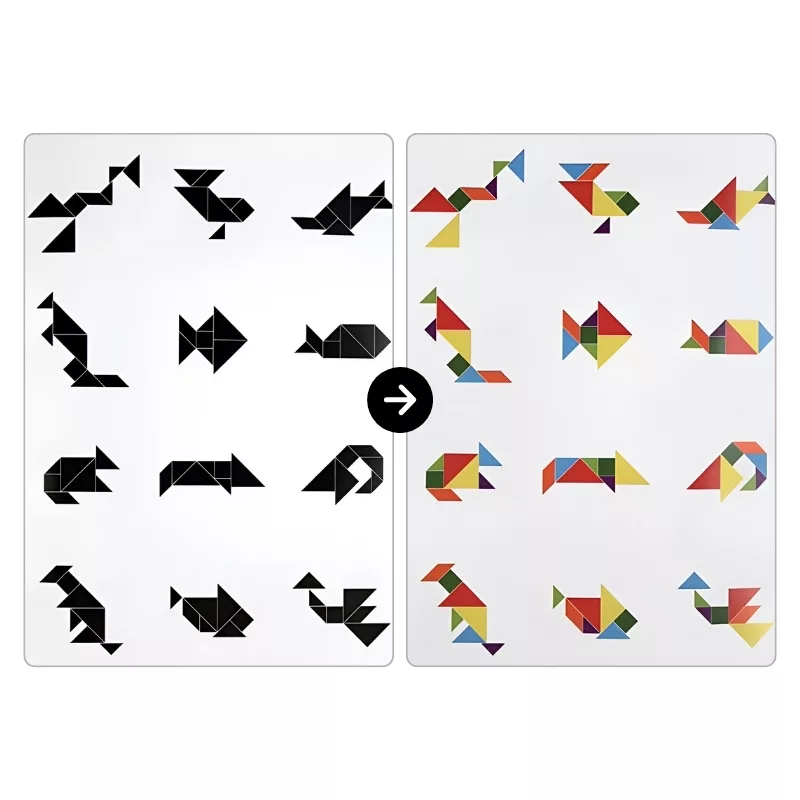 Dit tangramspel houdt mijn broer en mij urenlang bezig! We vinden het leuk om de vormen te combineren en grappige dieren en leuke puzzels te maken. Het is super leuk.