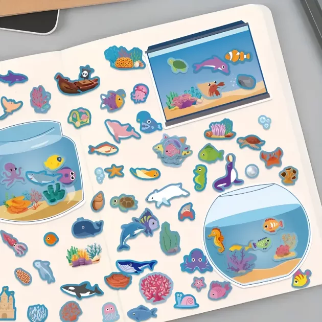 Ver elke regenachtige in een creatief. Felgekleurde stickers brengen de magie van de oceaan tot leven. activiteit houdt kleine handjes bezig en inspireert de geest. Geniet van samen plezier maken terwijl je kind zijn of haar droomaquarium bouwt.