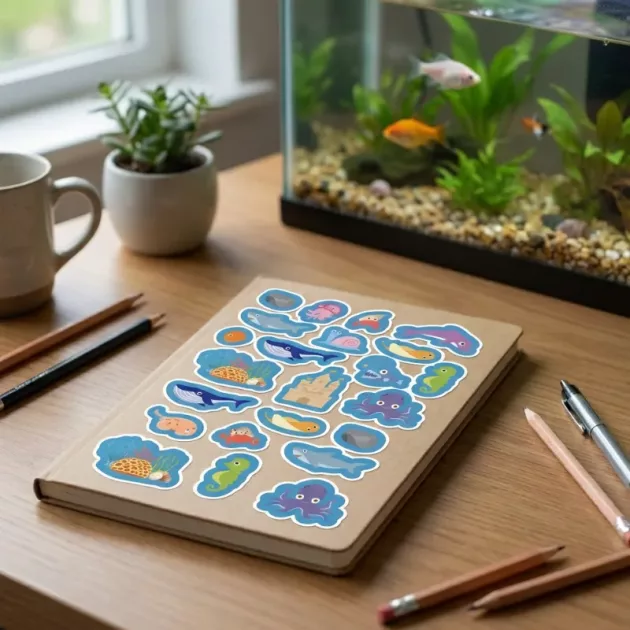 Ik nam deze stickers mee naar een logeerpartijtje en iedereen wilde een vel. We maakten aquaria op onze mappen. Er zijn zoveel vormen, we verveelden ons nooit.