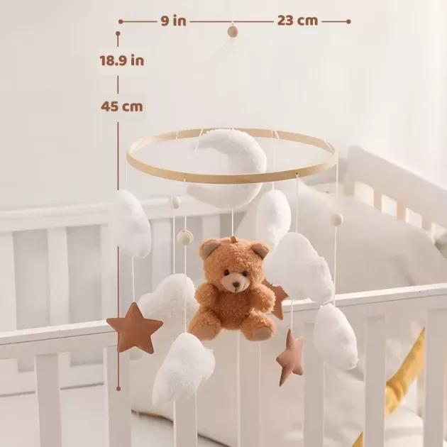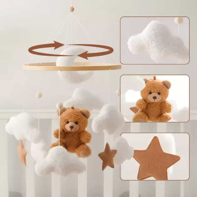 Het hangende speelgoed heeft het ledikantje van mijn baby omgetoverd tot een dromerig toevluchtsoord. Het kijken naar zachte bewegingen bevordert ontspanning en hielp onze kleine sneller in slaap te vallen.