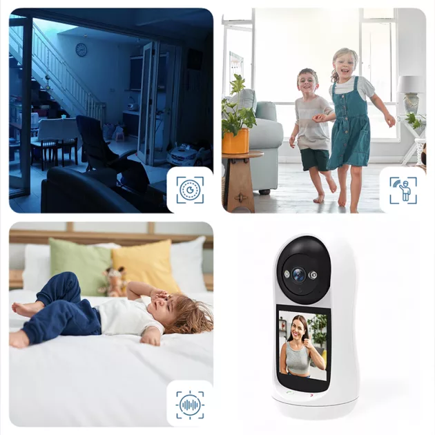 Zie en hoor je dierbare eenvoudig overal in huis. Ontvang direct meldingen wanneer er iets je aandacht nodig heeft. Spreek en check op elk moment in via je apparaat. Geniet van het geruststellende gevoel dat je gezin altijd veilig is, dag en nacht.