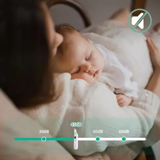 Kalmerende muziek - Onze elektrische neuszuiger wordt geleverd met een kalmerende melodie. Het helpt uw baby af te leiden tijdens de schoonmaak, waardoor het proces stressvrij is.