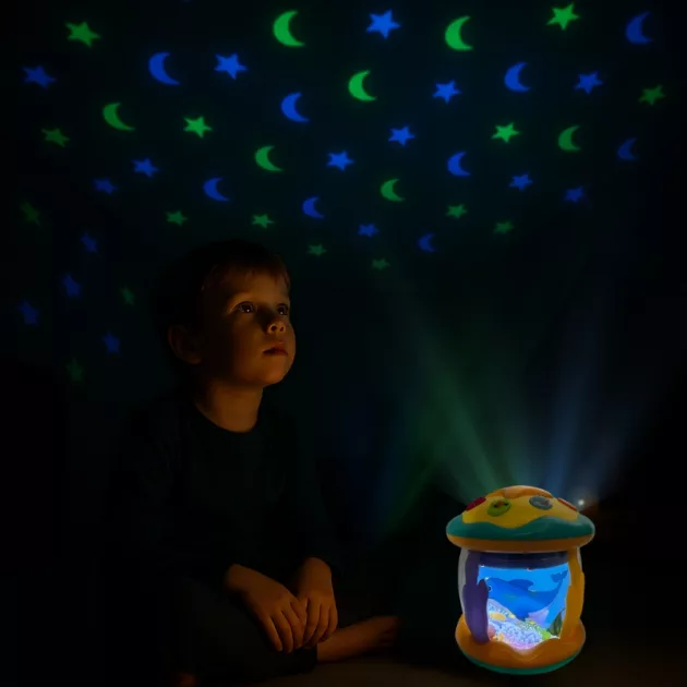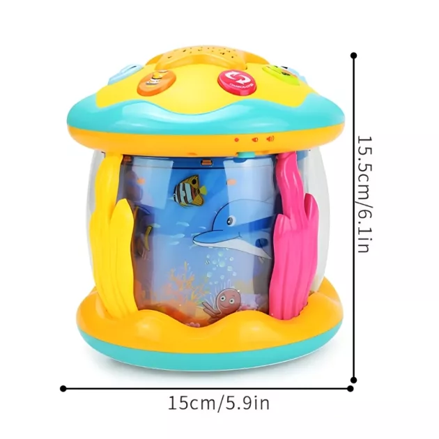 Dit muzikale speelgoed projecteert oceaanbeelden en speelt zachte melodieën om kleintjes te vermaken en te ontspannen. Het ondersteunt de sensorische ontwikkeling en zorgt voor een gezellige sfeer. Ideaal voor zowel overdag als tijdens het slaapritueel.