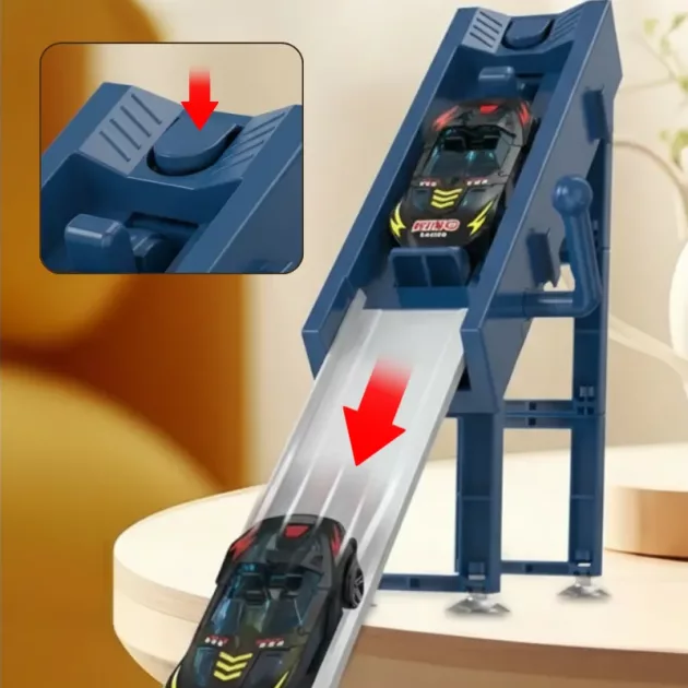 Dubbele Actiemodus - Schakel eenvoudig tussen twee racestijlen voor eindeloos speelplezier. Kies tussen zwaartekrachtgestuurde snelheid of een spannende vlakke lancering binnen.