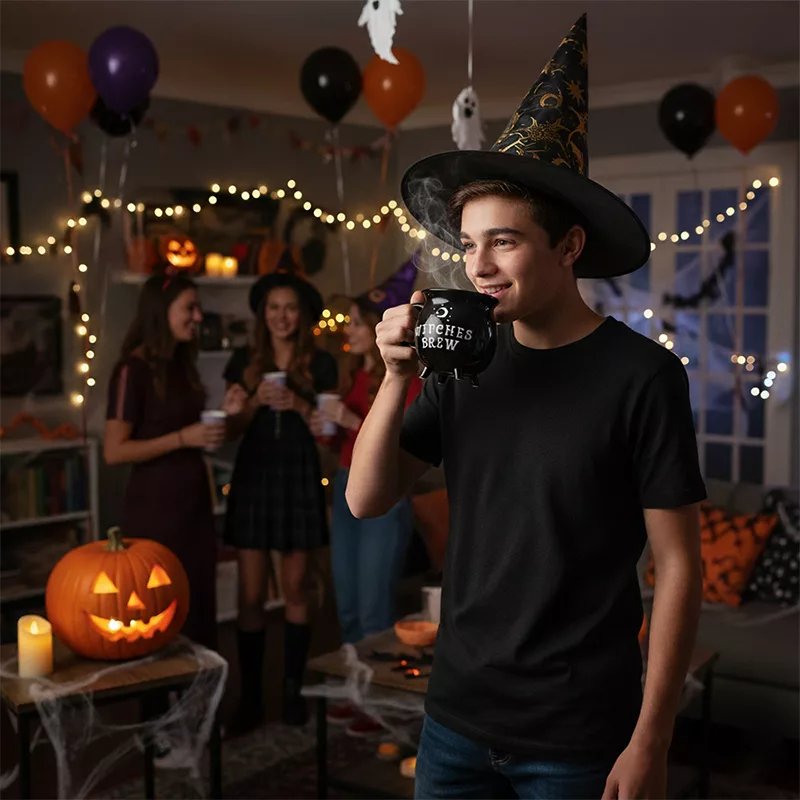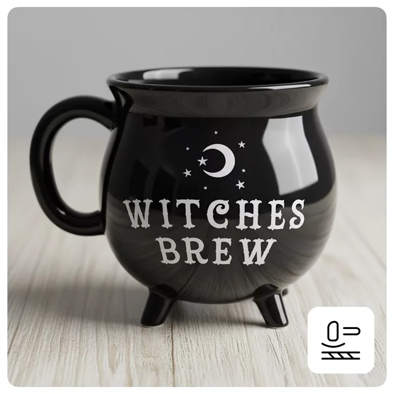 De beker ziet eruit als een echte kleine ketel! We gebruikten hem voor warme chocolademelk en iedereen op het Halloweenfeest vond het geweldig.