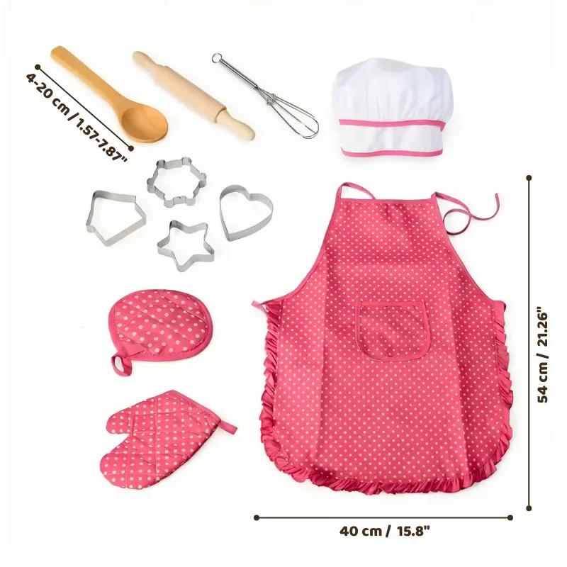 De hoed, schort en ovenwanten maken verkleden zoveel leuker bij ons thuis. Mijn kinderen zijn trots als ze het dragen en doen alsof ze koken.