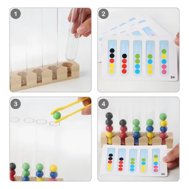 Versterkt het Brein - Kralen matchen met de kaarten bouwt logisch denkvermogen op. Puzzels helpen kinderen om snel te leren denken in alledaagse situaties.