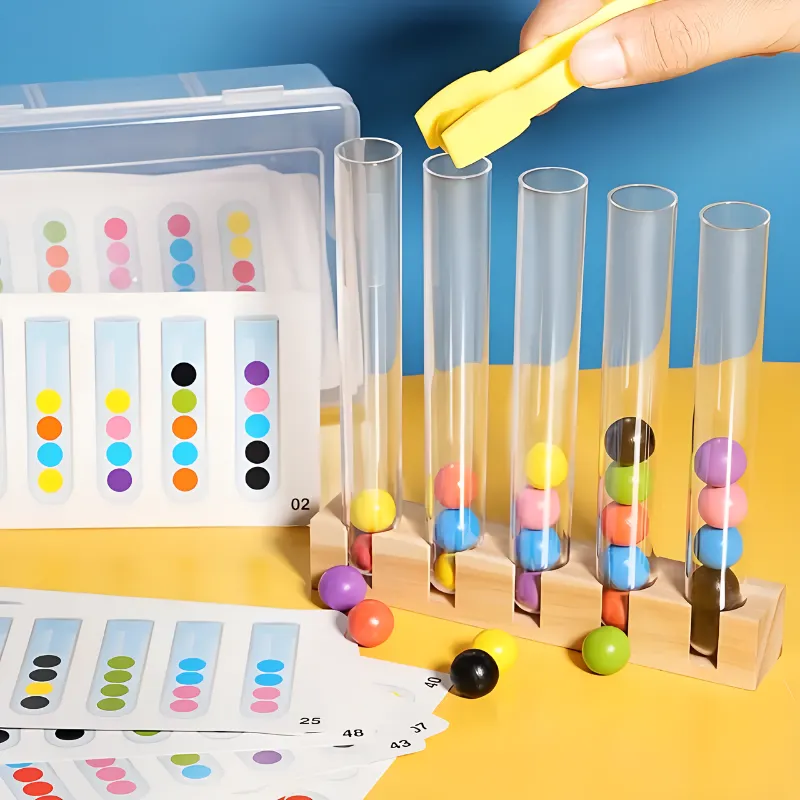 Versterkt het Brein - Kralen matchen met de kaarten bouwt logisch denkvermogen op. Puzzels helpen kinderen om snel te leren denken in alledaagse situaties.