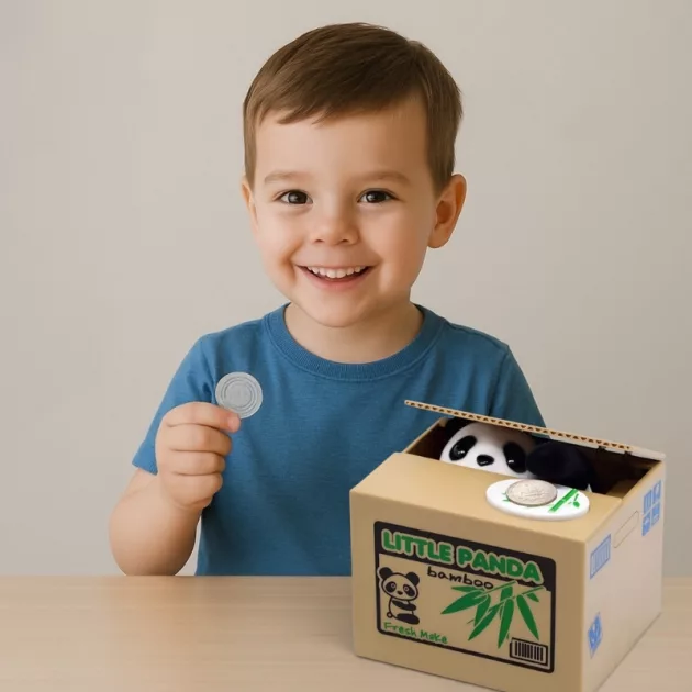 Deze leuke spaarpot laat kinderen hun geld bewaren terwijl ze leren over sparen. Kinderen staan versteld elke keer dat ze hun geld zien verdwijnen. De spaarpot is gebouwd om tegen een stootje te kunnen en is ideaal voor nieuwsgierige handjes. Het helpt ouders om op een eenvoudige en leuke manier te praten over budgetteren.