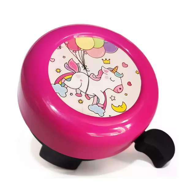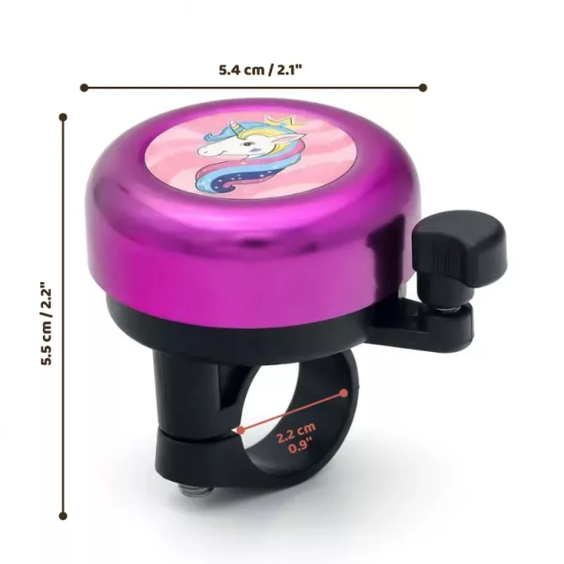 Mijn dochter vindt het leuk dat haar cartoonbel bij haar mandje past. De heldere ding maakt wandelingen in het park soepeler omdat joggers haar al horen lang voordat ze hen bereikt.