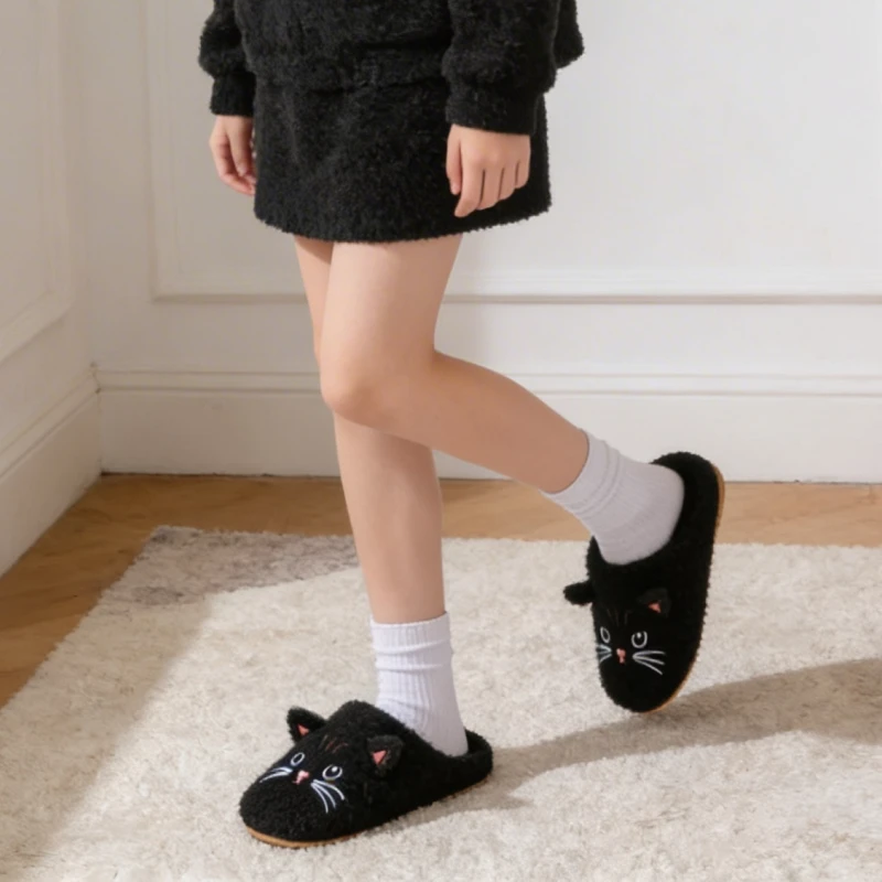 Schattige Kat Warme Huissloffen Pluche Dierenpantoffels voor Kinderen