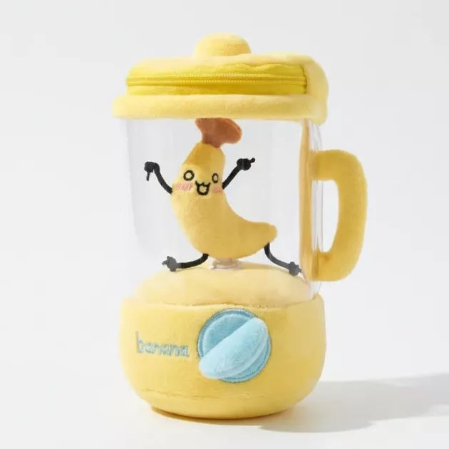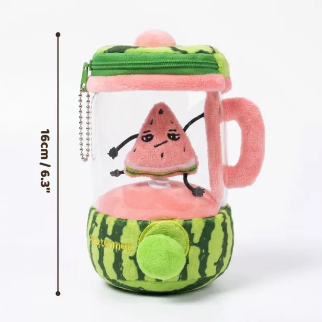De kleuren van deze juicer-knuffel zijn zo vrolijk. Mijn zoontje zet zijn andere speelgoed in een rij en doet alsof het klanten zijn die wachten op fruitige drankjes.