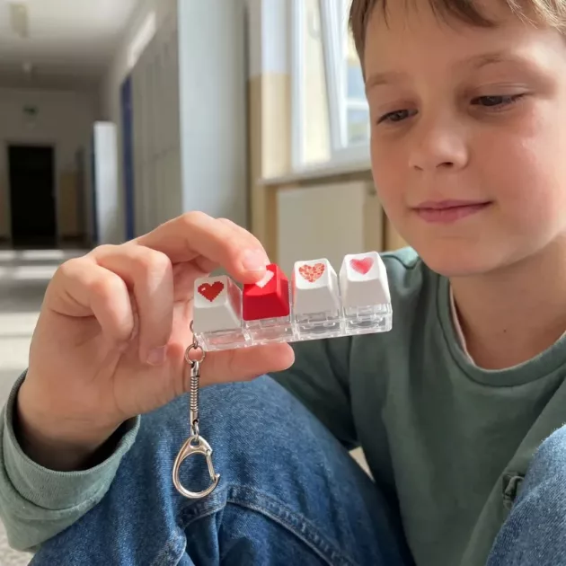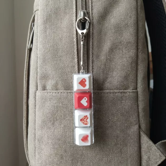 Mijn zoon houdt het kleine toetsenbordhart aan zijn rugzak, en ik merk dat hij minder op zijn mouwen kauwt tijdens het huiswerk maken.