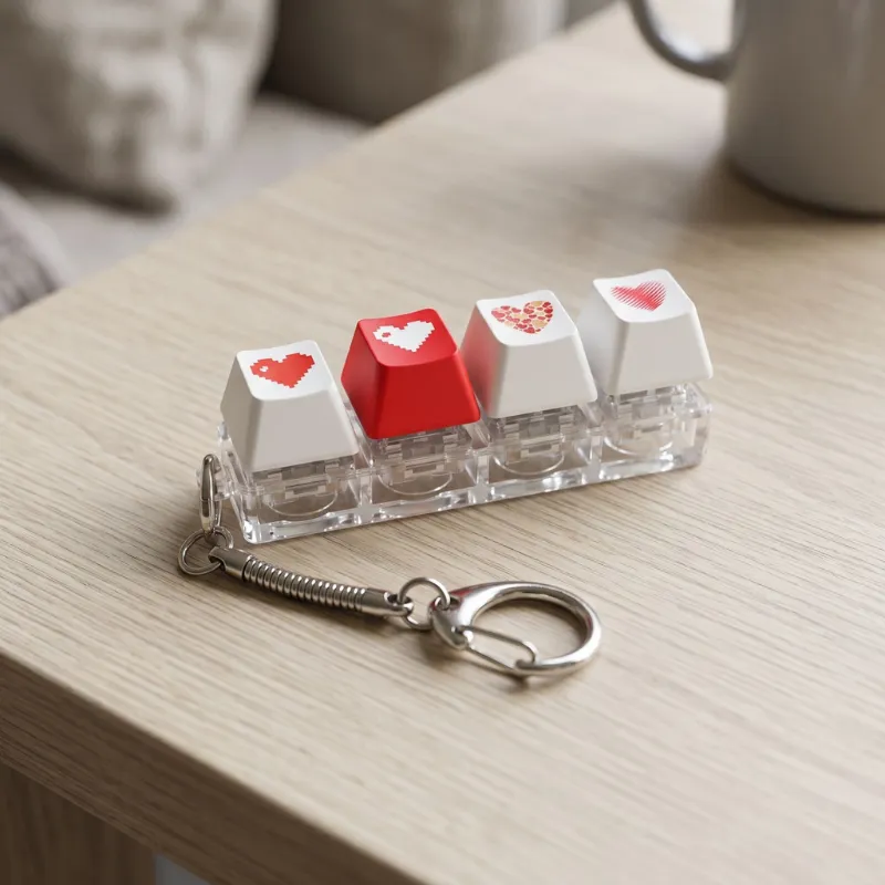 Het hart-sleutelding voor mijn kleinzoon gekocht; het past in zijn zak en helpt hem rustig te blijven terwijl hij in de wachtkamer bij de dokter zit.