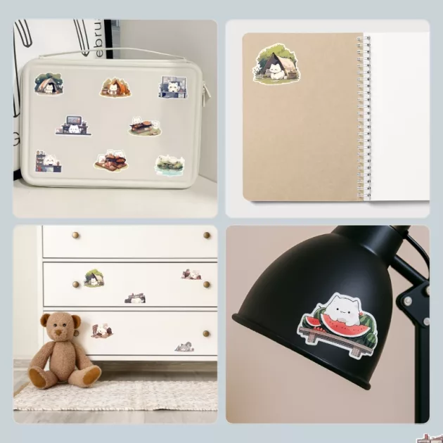 Mijn neefje heeft deze op zijn etui en drinkfles geplakt. Ze blijven zitten, zelfs na meerdere keren wassen. Hij vindt het geweldig om zijn kattencollectie te laten zien!