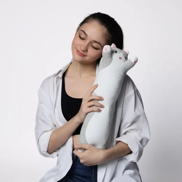 Mijn nichtje kocht me deze schattige kat. ’s Nachts gebruik ik hem als kussen en overdag doen we alsof het een huisdier is dat op avontuur gaat.