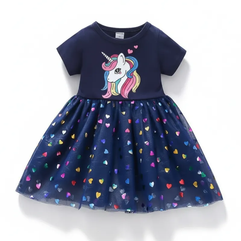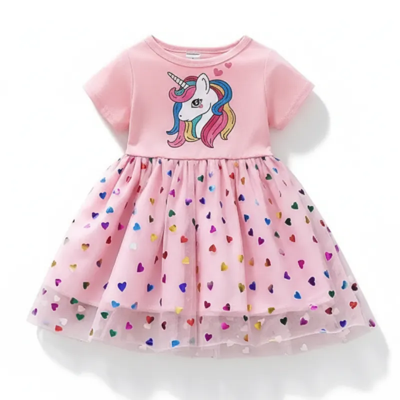 Schattige Korte Mouwen Katoenen Eenhoornjurk voor Kinderen