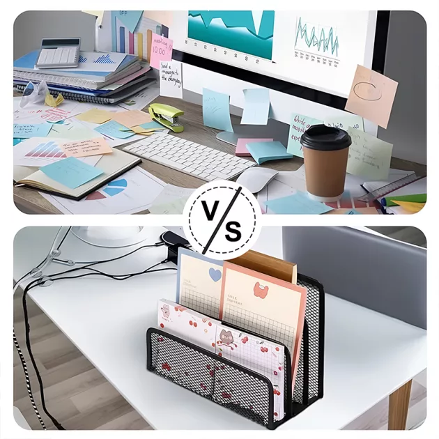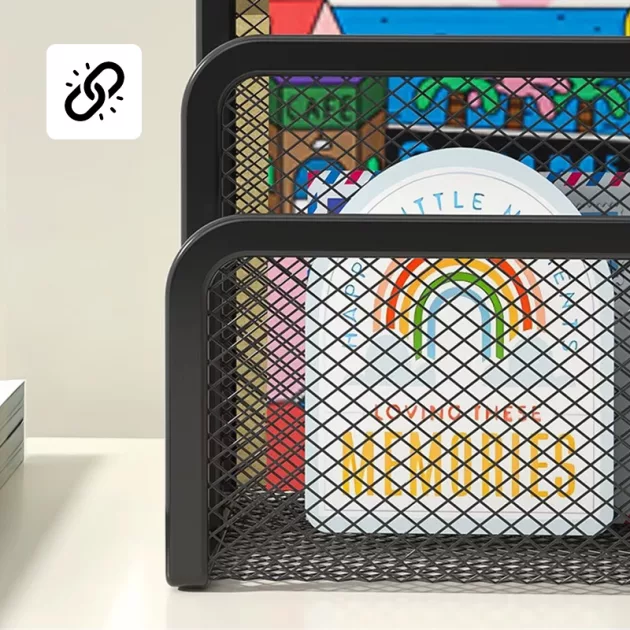 Deze standaard maakt het leuk om alles netjes te houden. Ik kan mijn mappen, stiften en notities allemaal makkelijk kwijt zonder gedoe.