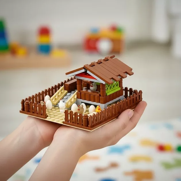 Mijn broertje en ik hebben samen de hele boerderijset gebouwd en zo veel gelachen! Het was echt leuk en nu hebben onze speelgoedkippen een thuis.
