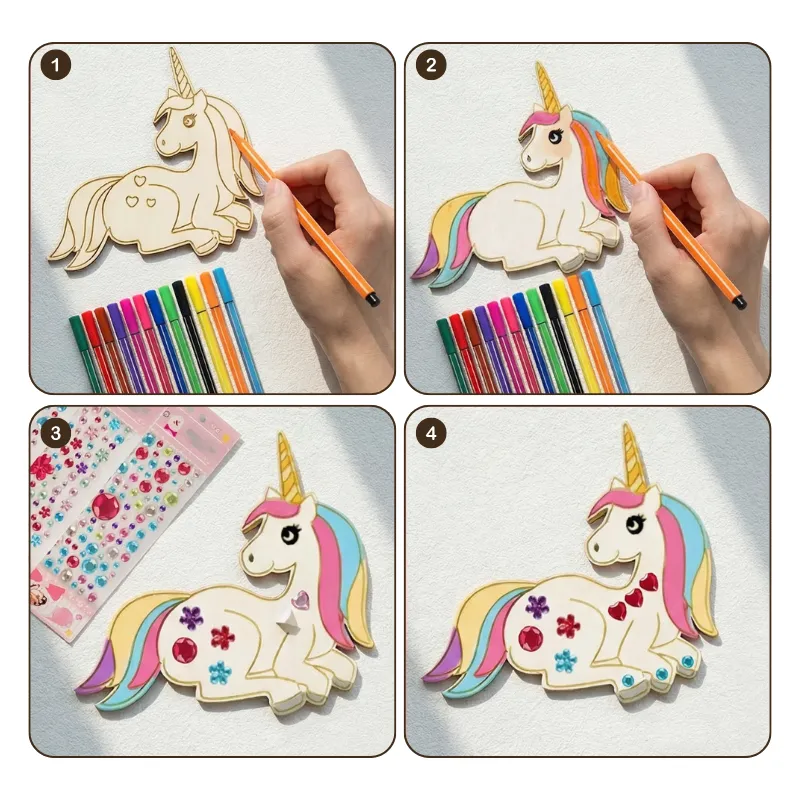 Geweldig voor speelafspraakjes, iedereen kon zijn eigen eenhoorn versieren. Geen ruzie en geen verf op tafels! Ik koop er meer voor verjaardagskado’s.
