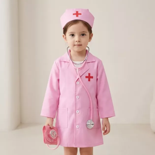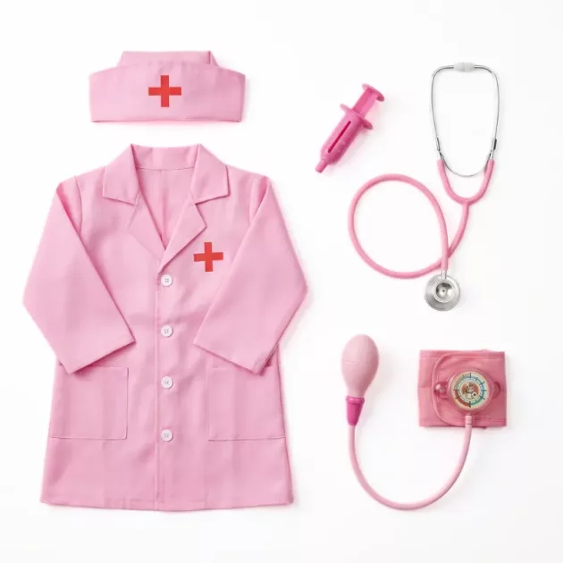 Mijn kleintje speelt graag verpleegster. Ze doet de jas ook om bij de hond! De instrumenten lijken op echte medische spullen, maar zijn makkelijk voor kinderen om te gebruiken.