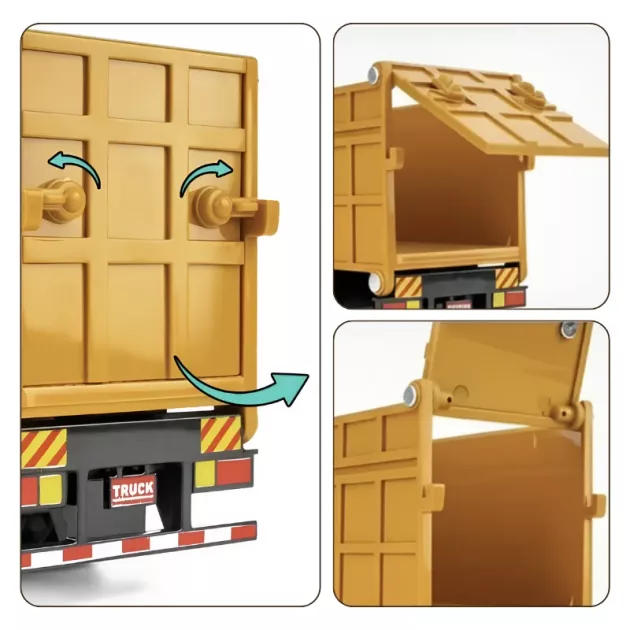 De deuren gaan open net als bij een echte kiepwagen, dat is gaaf. Ik doe altijd alsof ik de chauffeur ben en naar een grote klus ga.