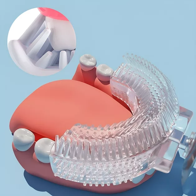 Effectief - Dankzij het unieke U-vormige ontwerp bereikt onze tandenborstel alle hoeken van de mond. Het verwijdert hardnekkige vlekken en voorkomt tandbederf.