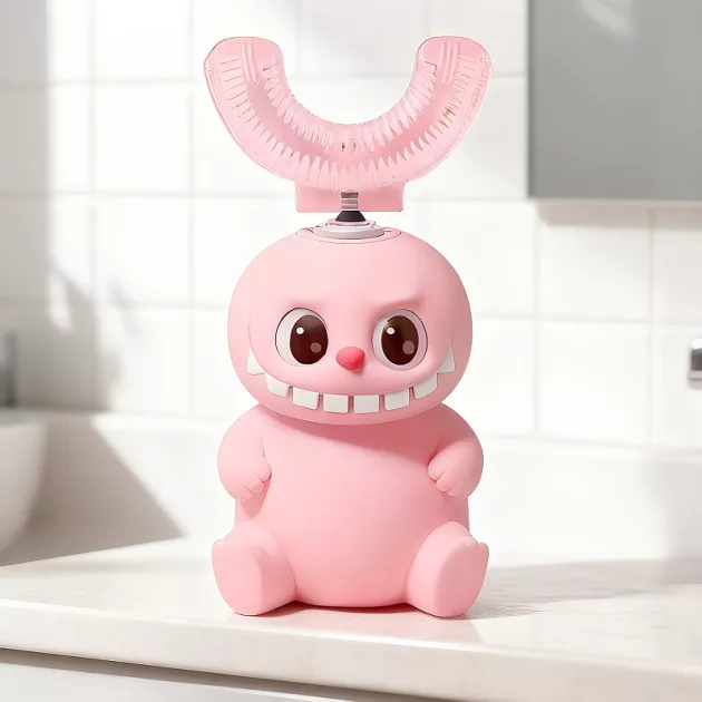 Geen gezeur meer in de badkamer. Mijn dochter pakt hem elke ochtend zelf. Hij is zacht voor haar tandvlees en de U-vorm poetst alles tegelijk.