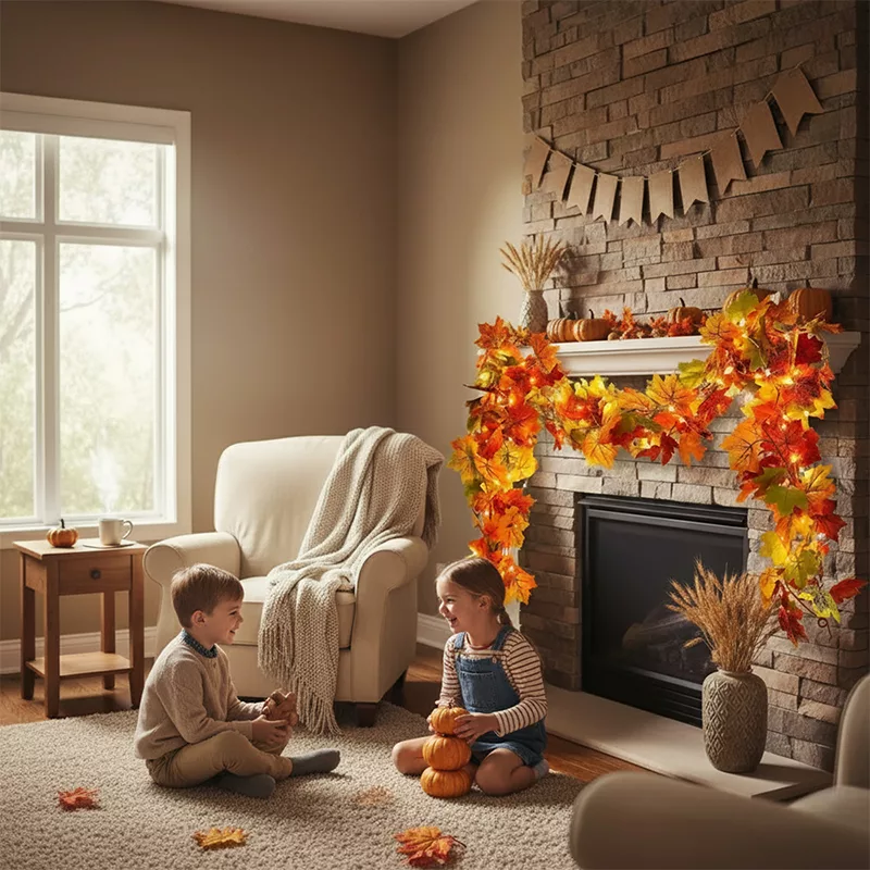 Breng kleur in je huis met prachtige kunstmatige bladeren decoratie. Kinderen genieten van de kleurrijke verandering die elke dag een glimlach brengt. Ouders vinden het fijn hoe makkelijk het is om op te hangen en te verplaatsen. Je gezin voelt altijd de warmte van de herfst binnenshuis.