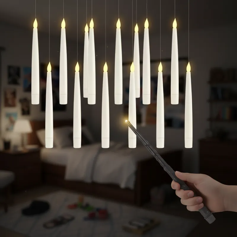 Zwevende Kaarsenlampjes met Magische Toverstaf en Griezelige Decoraties