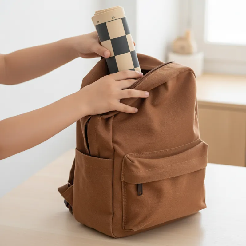 Past in mijn rugzak zodat ik na school met vrienden kan spelen. Leert me vooruit te denken en maakt regenachtige dagen minder saai.
