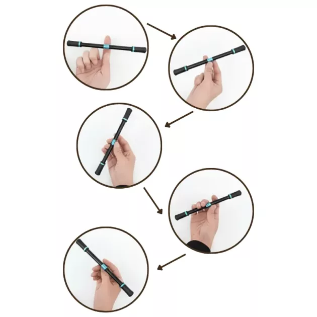 Deze draaiende pen hielp mijn kleine zusje tijdens toetsen. Ze zei dat draaien haar minder zenuwachtig maakte en dat ze sneller klaar was.