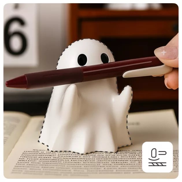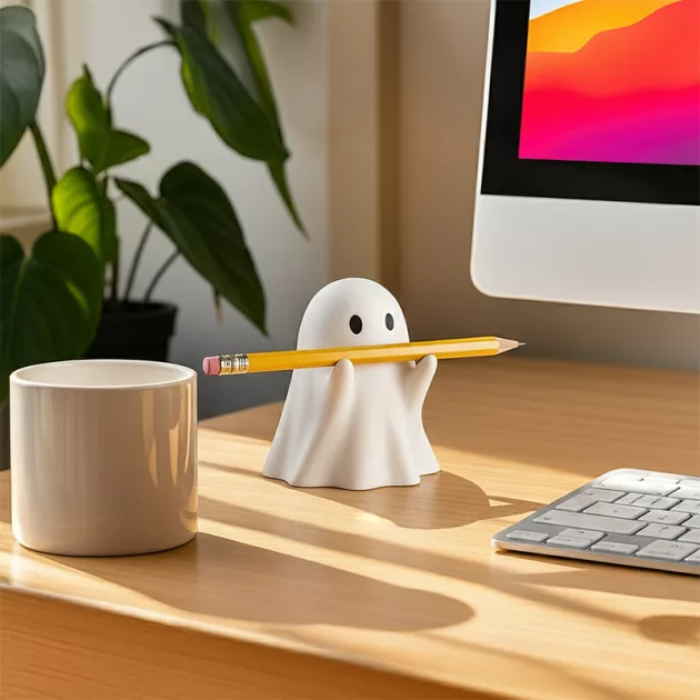 Niet meer graven in laden naar mijn favoriete stiften. Het kleine spook helpt me alles op één plek te houden.