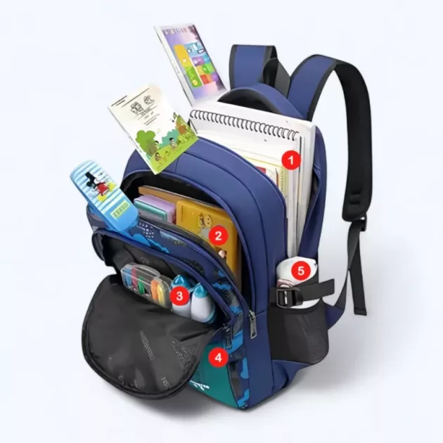 Stuur je kind elke ochtend zonder stress goed voorbereid op pad. Boeken, schrijfwaar en lunch blijven netjes in aparte vakken. Verstelbare banden helpen schouderklachten na lange dagen voorkomen.