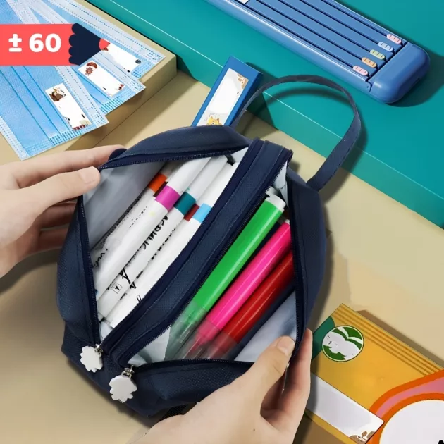 Grote Opbergruimte - Dubbele lagen houden benodigdheden gescheiden voor snelle toegang. Niet meer zoeken naar pennen of gummen voordat de lessen beginnen.
