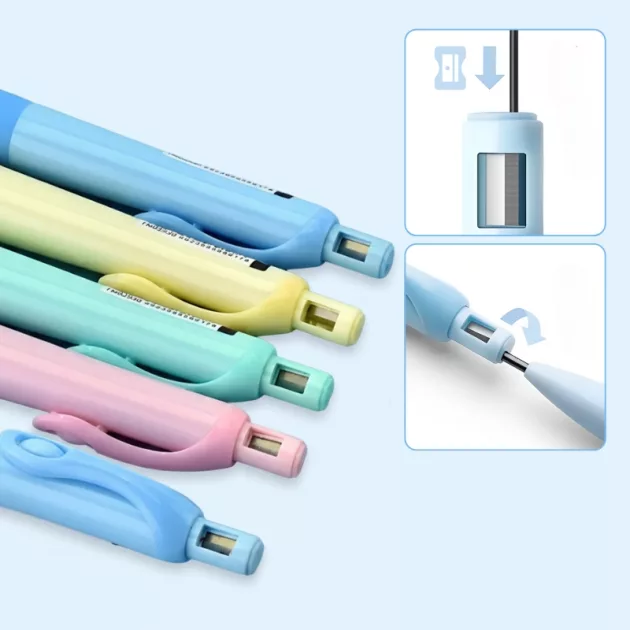 Ge je geliefde elke keer een soepele schrijfervaring. Heldere kleuren inspireren tot creativiteit terwijl het stevige ontwerp breuk voorkomt. Elk potlood past kleine handjes, zodat leren schrijven eenvoudig en leuk is. Navulbare vullingen betekenen nooit meer zoeken naar reserve of opnieuw een pak kopen.