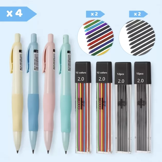 Mijn zoon vindt het geweldig hoe kleurrijk deze potloden zijn! De grip is comfortabel voor zijn handen en door de navullingen raakt hij nooit zonder potlood op school.
