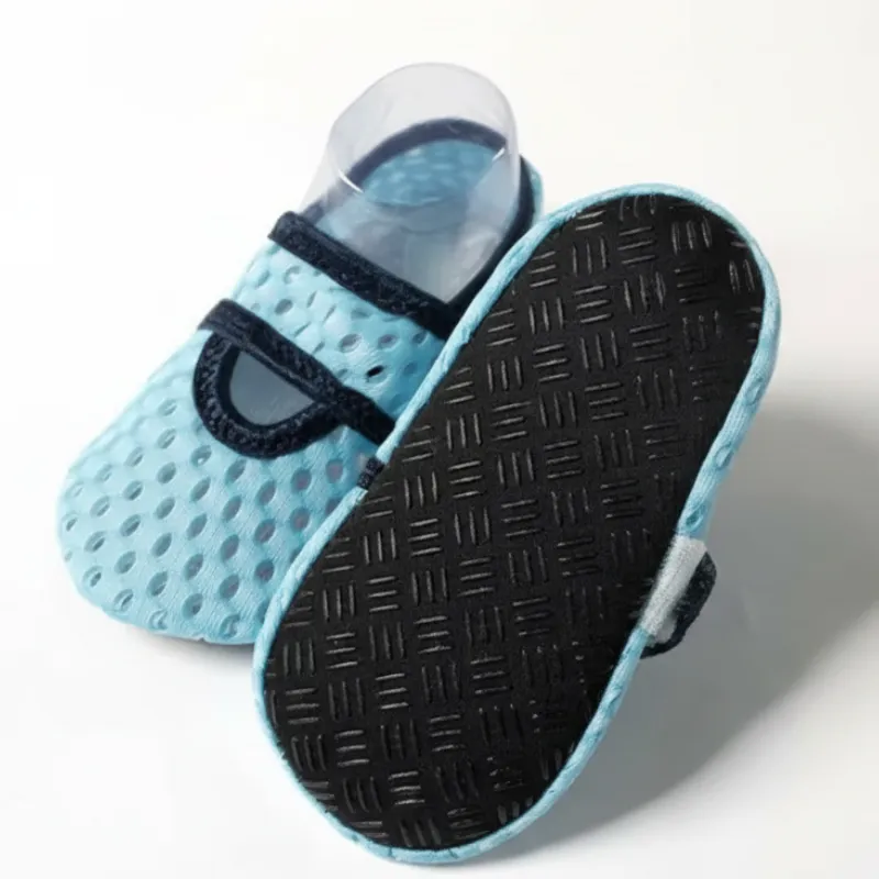 Deze waterschoentjes heb ik voor de opvang gehaald. Volgens de juffen glijden ze niet op de vloer in de gymzaal, en mijn zoontje loopt er de hele dag fijn op zonder gemopper of plekjes op zijn voeten.